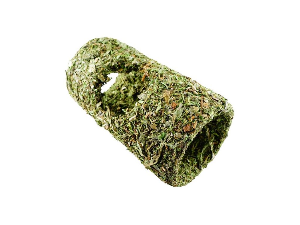 Bylinkový tunel obalený ve voňavých bylinách jako je třapatka, listy maliny, listy jahody, heřmánek, máta, meduňka, jitrocel, pampeliška a petržel, podnítí u zvířat hlodání a tím žádoucí obrušování hlodavých zubů. Menším hlodavcům poslouží jako úkryt nebo prolézačka. Tunel lze opakovaně plnit i senem nebo bylinami.
