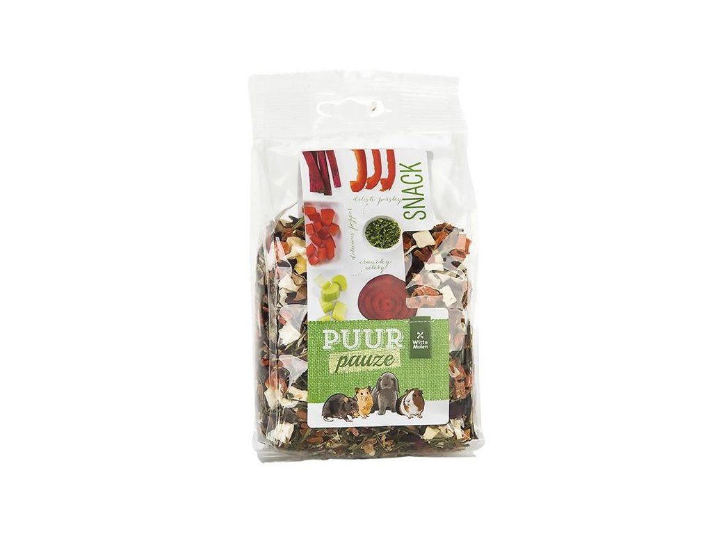 PUUR pauze snack je lahodná směs výhradně z přírodních surovin pro drobné savce. Neodolatelná rafinovaná kombinace chutí a vůní zeleniny a bylinek.