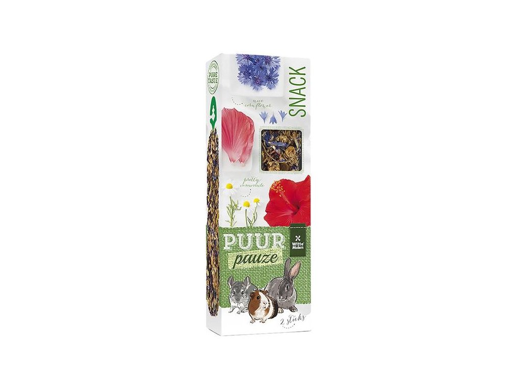 PUUR pauze Sticks s květy jsou lahodné tyčinky pro drobné savce plné přírodních chutných složek pro skutečný gurmánský požitek. Křupavé tyčinky podnítí aktivitu zvířat, zabaví je a zaženou nudu.