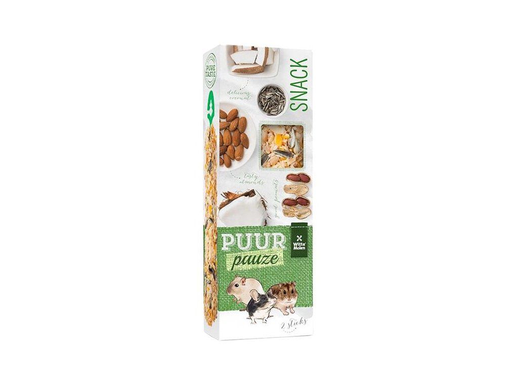 PUUR pauze Sticks s ořechy jsou lahodné tyčinky pro všežravé hlodavce (křečky, pískomily, potkany, myši) plné přírodních chutných složek pro skutečný gurmánský požitek. Křupavé tyčinky podnítí aktivitu zvířat, zabaví je a zaženou nudu.