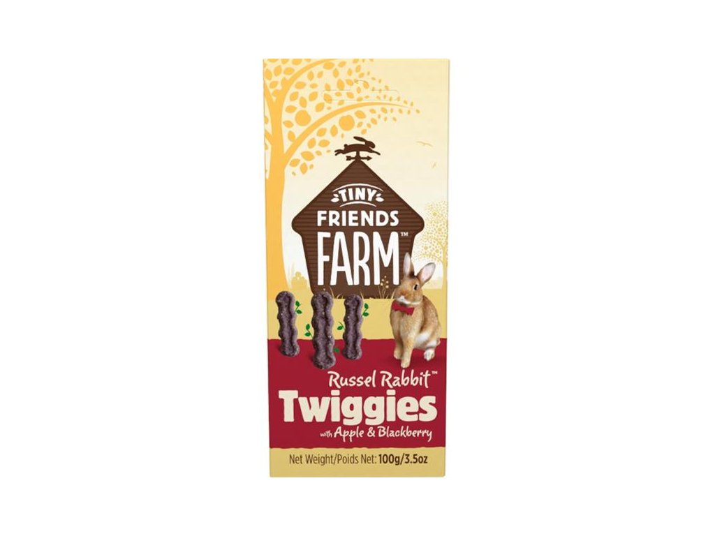 Představujeme tyčinky Russel Rabbit Twiggies with Apple & Blackberry upečené ze samých dobrot, k nimž patří přírodní obiloviny a chutné ovoce. Skvěle poslouží jako odměna nejen pro králíky, ale i pro další drobné savce, jako jsou morčata, činčily, křečci, pískomilové, myši a potkani. Sušenky můžete zvířeti opatrně nabízet z ruky a tím budovat a upevňovat vztah mezi vámi. Také lze jeden nebo dva kousky schovat v kleci nebo v ohrádce a podnítit tak u zvířete přirozený pud hledání potravy.