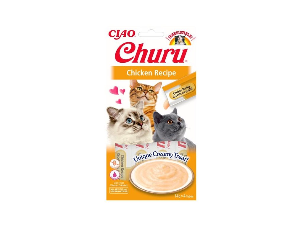 Neodolatelně chutné grain free masové pochoutky na způsob kočičích kapsiček, které se podávají přímo "z ruky". Díky unikátní krémové konzistenci pamlsku Churu objevíte nový způsob odměňování vašeho mazlíčka a chvíle s pochoutkami Churu budou bavit vás i vaší kočku! S Churu budete trávit čas s vaší kočičkou hravým a interaktivním způsobem nebo můžete masové pyré podávat stejně jako jinou kočičí kapsičku samostatně z misky nebo společně s granulemi pro vylepšení jejich chuti. Kočičí pamlsky mají vysoký obsah vody a díky tomu jsou vhodným doplňkem k suchému krmivu, pro pohotovostní doplnění tekutin a pro kočky které málo pijí.