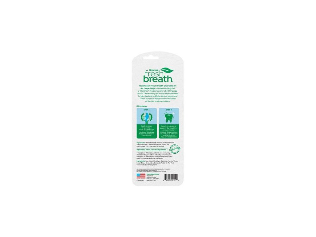 Sada na čištění zubů pro psy obsahuje:Cleen Teeth Gel – gel na čištění zubů, pomáhá snižovat a omezovat tvorbu plaku a zubního kamene. Gel ničí bakterie, které způsobují špatný dech, tvorbu zubního kamene a zánět dásní.