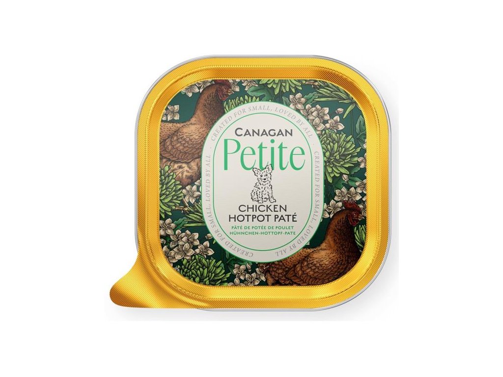 Paštika Canagan Petite vyrobená z těch nejlepších ingrediencí poskytne vašemu psímu mazlíčkovi lahodné a vyvážené krmení nebo skvěle poslouží jako topper k ochucení granulí. Stejně jako v ostatních výrobcích značky Canagan, ani v této vaničce nenajdete žádné obiloviny. Kuře je v nich doplněné zeleninou a ovocem (jablka v bio kvalitě), bylinkami a kloubní výživou pro podporu pohyblivosti.