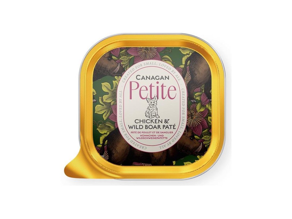 Paštika Canagan Petite vyrobená z těch nejlepších ingrediencí poskytne vašemu psímu mazlíčkovi lahodné a vyvážené krmení nebo skvěle poslouží jako topper k ochucení granulí. Stejně jako v ostatních výrobcích značky Canagan, ani v této vaničce nenajdete žádné obiloviny. Kuře a divočáka v nich doplňuje zelenina a ovoce (jablka v bio kvalitě), bylinky a kloubní výživa pro podporu pohyblivosti.