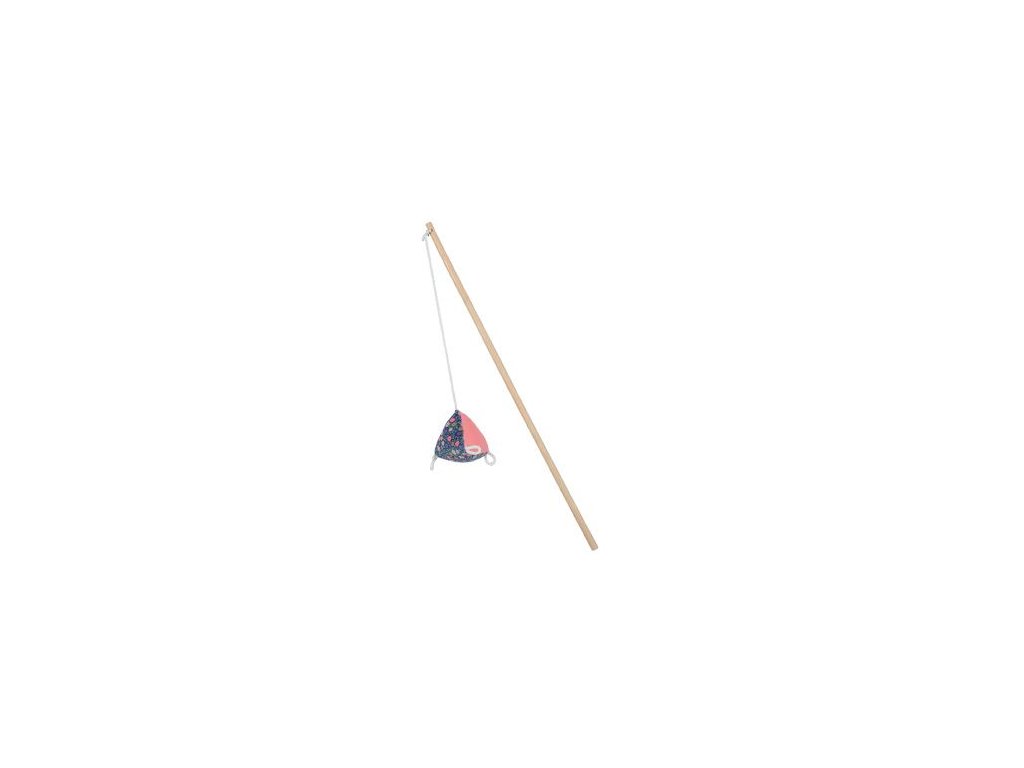 Hračka pro kočky s šantou kokočičí, bambusová udice, květinový vzor.
