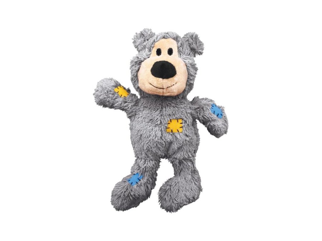 Plyšová hračka Medvěd Knots je pevná, interaktivní hračka určená k přetahování, které psi milují. Každá hračka má lano zapletené uvnitř, při čemž z venku ústí v úchytech na každé straně. Jedinečný vzhled podkreslují pevné struktury, tolik oblíbené u psů. Navíc obsahuje pískátko pro zvýšení zábavy.