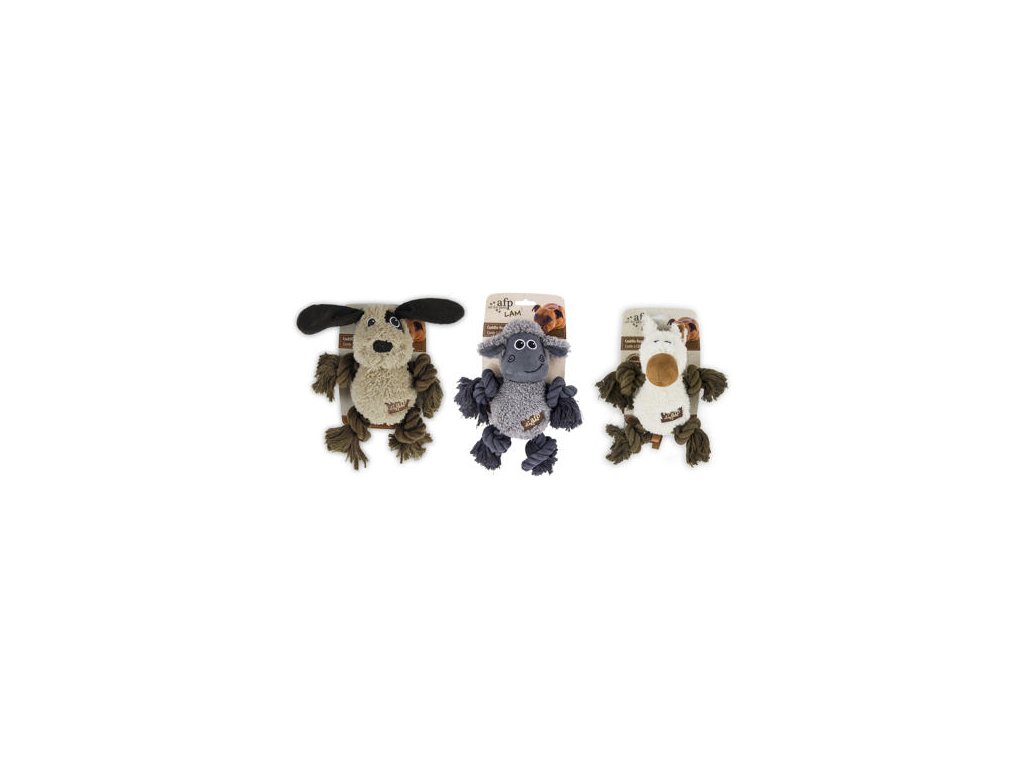 Plyšové zvířátko (pes, ovečka nebo kůň) z provazů a měkkého fleecu s pískátkem uvnitř.Tuto řadu měkkoučkých plyšáků si váš pejsek zamiluje díky kombinaci provazu, imitace vlny a umělého semiše, která je ideální jak k pořádnému přitulení, tak ke hře.