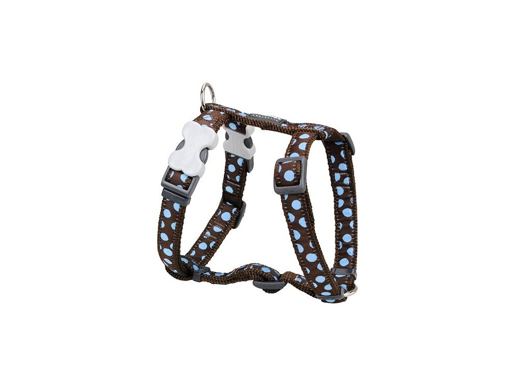 Red Dingo postroj – Blue Spots on Brown – 25 mm x 56-80 cm