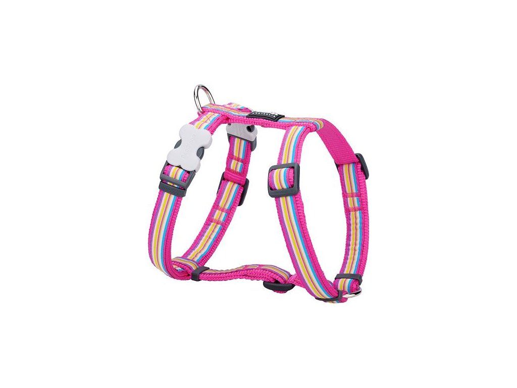 Red Dingo postroj – Horizontal Stripes Hot Pink – 12 mm x 30-44 cm