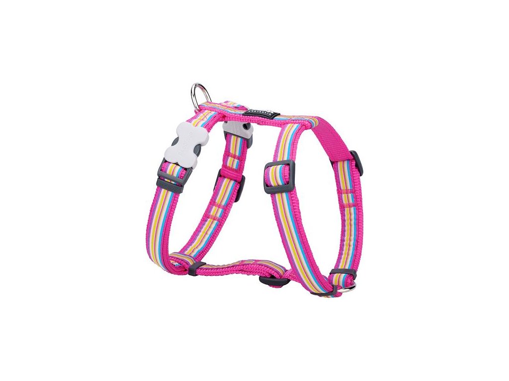 Red Dingo postroj – Horizontal Stripes Hot Pink – 20 mm x 45-66 cm