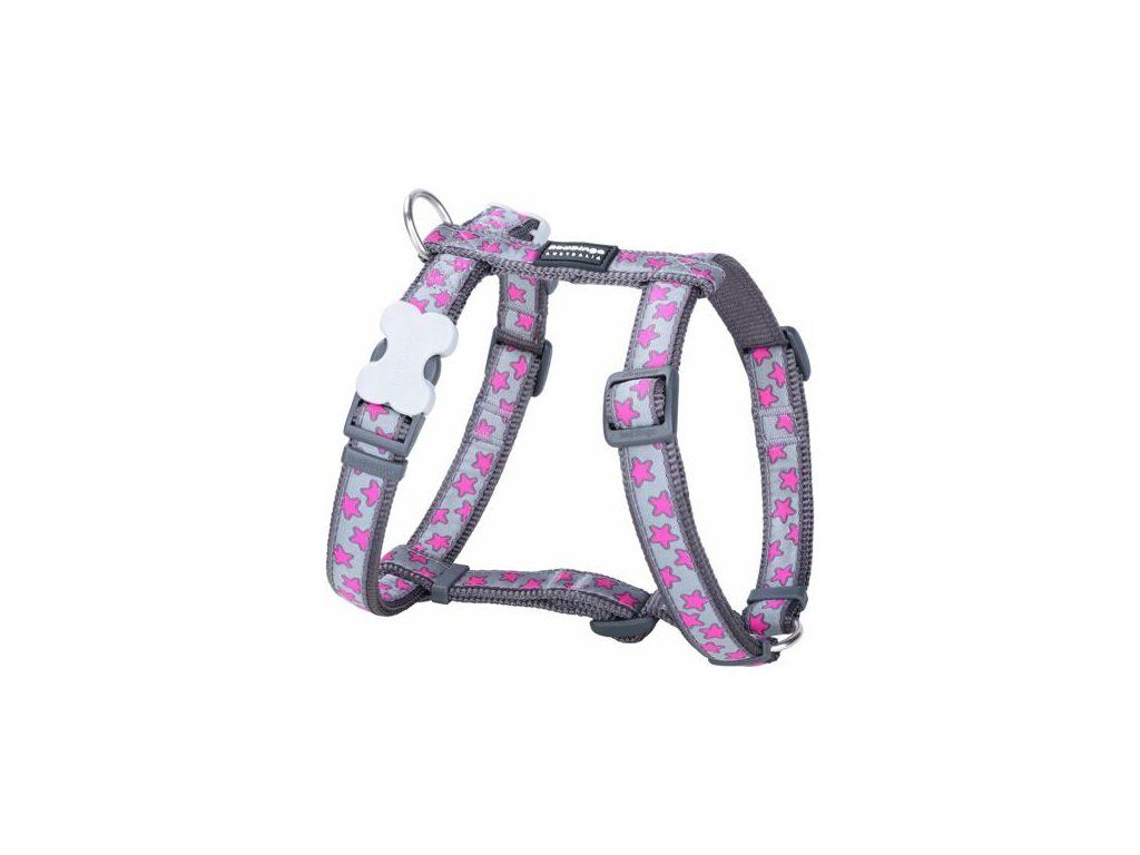 Red Dingo postroj – Hot Pink Stars on Grey – 15 mm x 36-54 cm