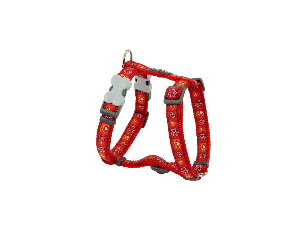Red Dingo postroj – Paw Impressions Red – 20 mm x 45-66 cm