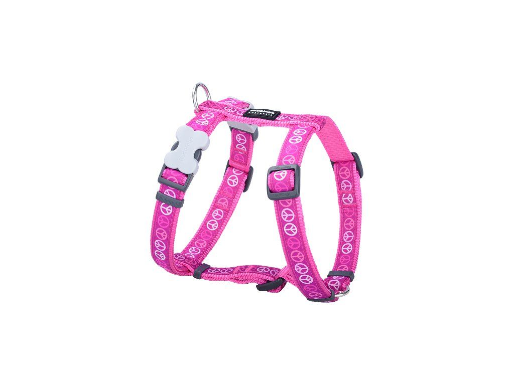 Red Dingo postroj – Peace Hot Pink – 15 mm x 36-54 cm