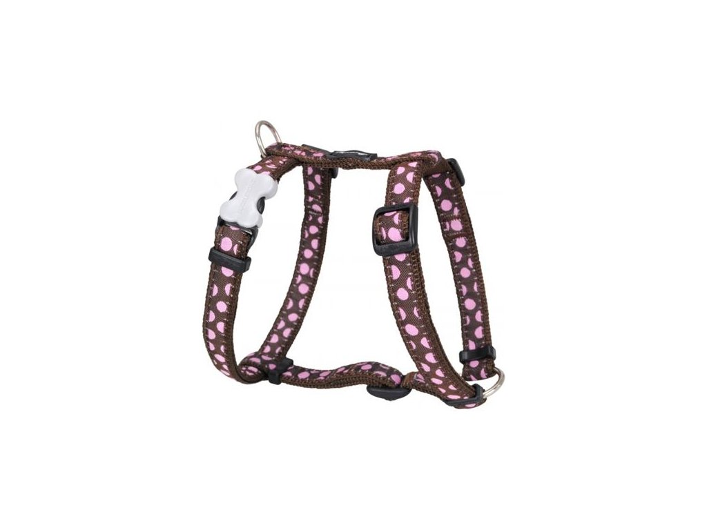 Red Dingo postroj – Pink Spots on Brown – 12 mm x 30-44 cm