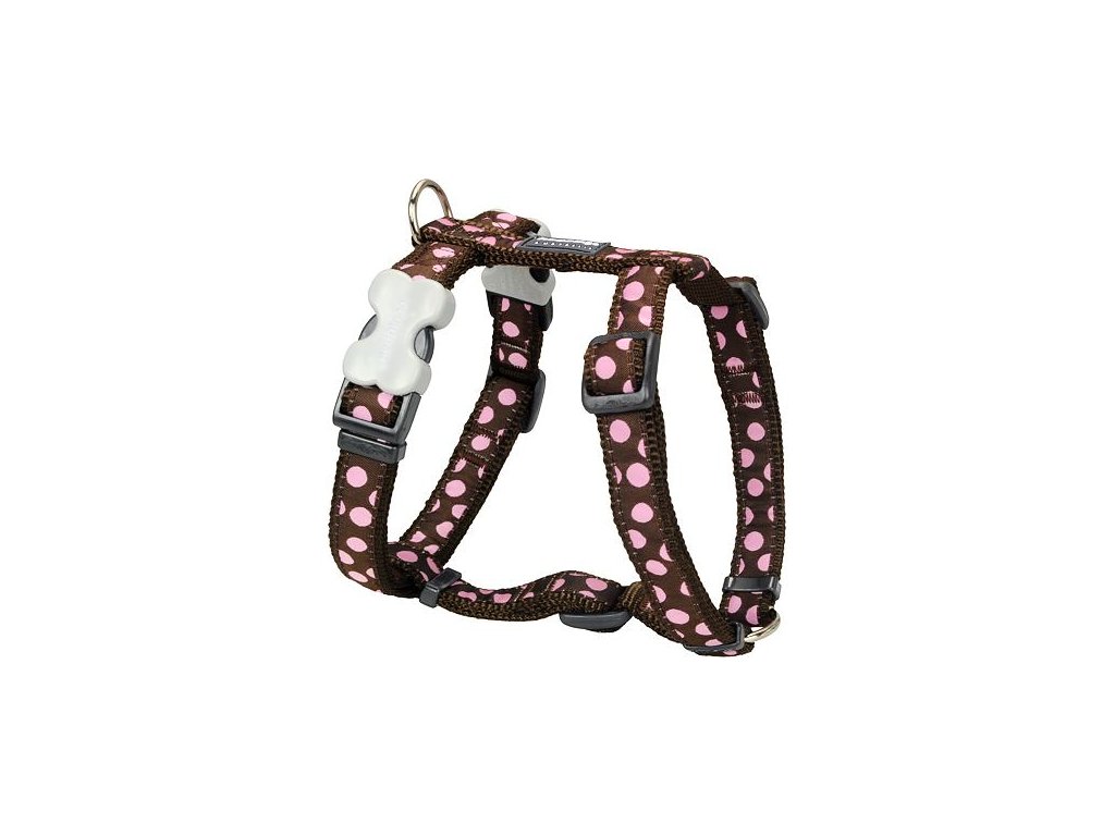 Red Dingo postroj – Pink Spots on Brown – 15 mm x 36-54 cm