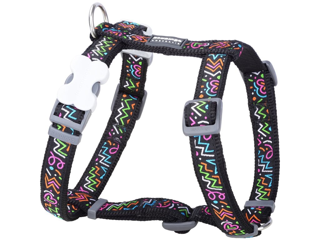 Red Dingo postroj – Squiggles Black – 20 mm x 45-66 cm