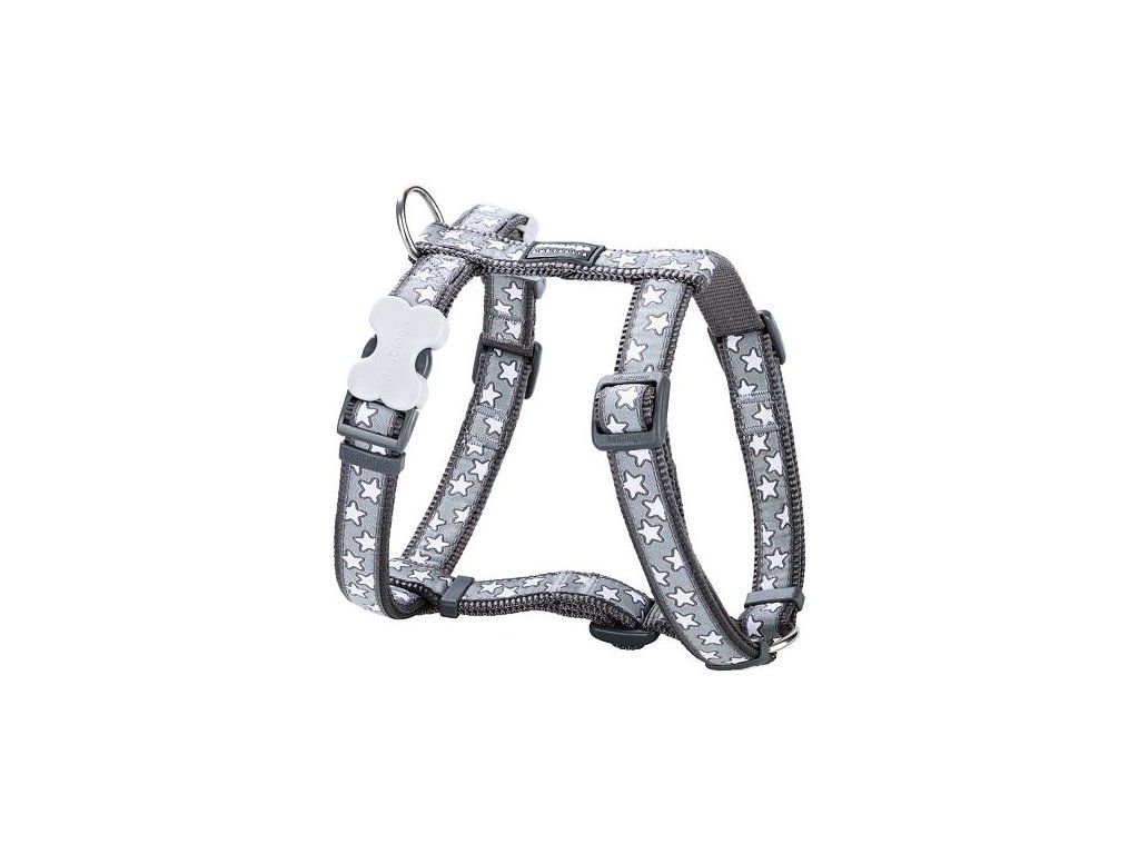 Red Dingo postroj – Stars White on Grey – 25 mm x 56-80 cm