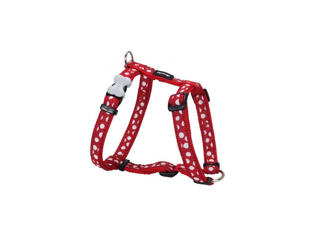 Red Dingo postroj – White Spots on Red – 12 mm x 30-44 cm