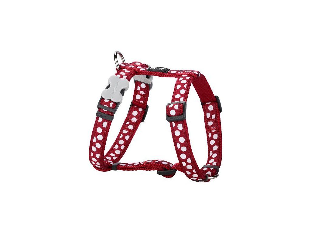 Red Dingo postroj – White Spots on Red – 20 mm x 45-66 cm