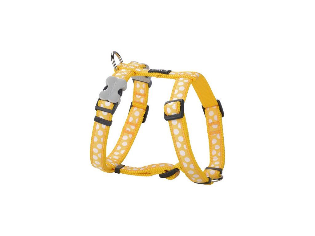 Red Dingo postroj – White Spots on Yellow – 20 mm x 45-66 cm