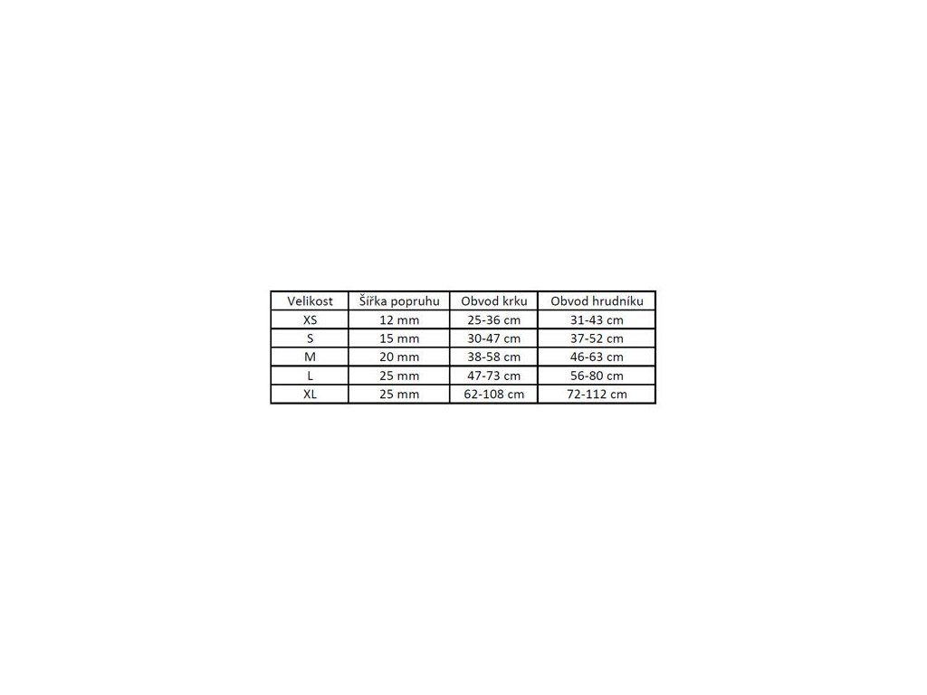 Velikost: obvod krku 30-47 cm, obvod hrudníku 37-52 cm