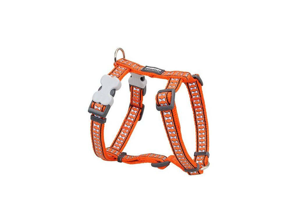 Red Dingo postroj reflexní – Bones Orange – 20 mm x 45-66 cm