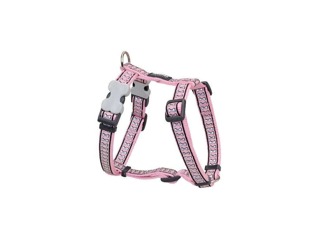 Red Dingo postroj reflexní – Bones Pink – 12 mm x 30-44 cm