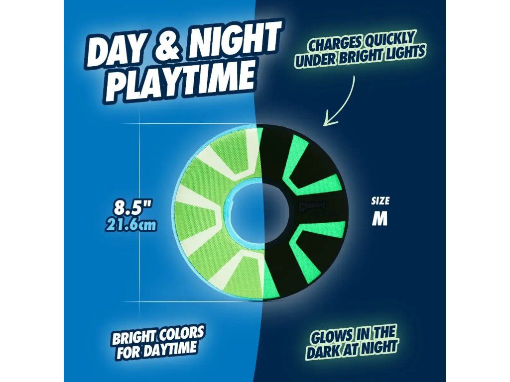 Chuckit! Max Glow Zipflight svíticí létající talíř – Medium 21 cm