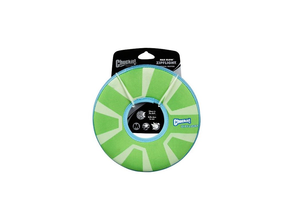 Obojživelný létající talíř vhodný k aportování.Létající talíř Zipflight Max Glow je ve tmě výborně vidět, úžasně plave, je příjemný do zubů a přitom velice odolný.