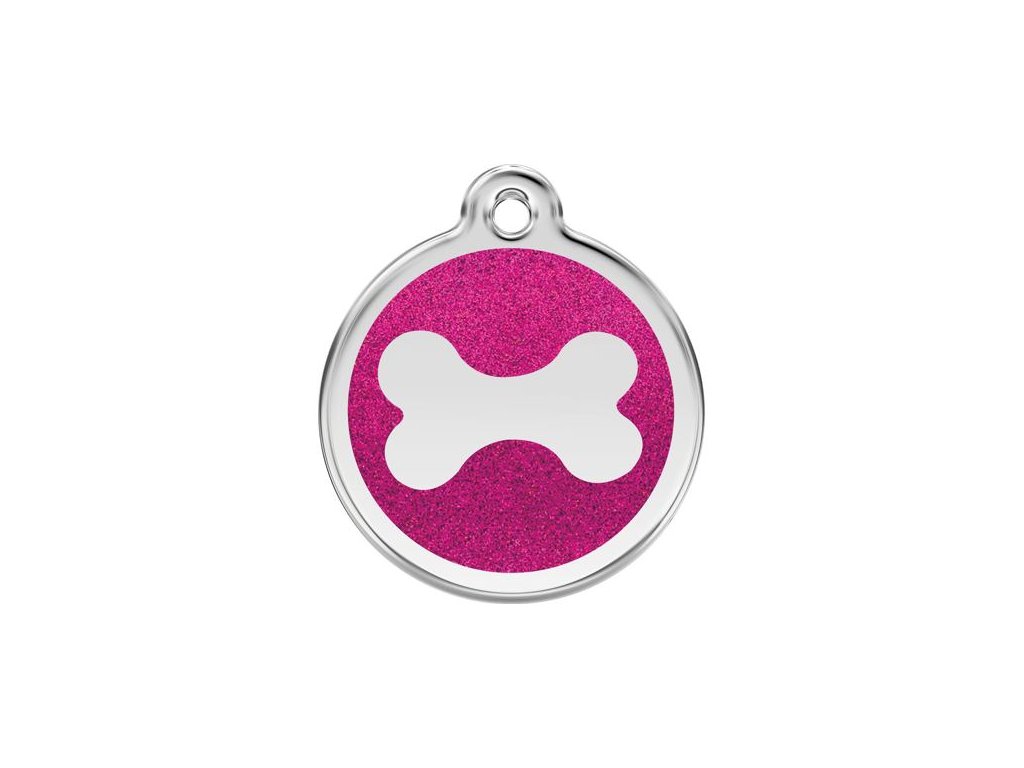 Red Dingo známka – Bone Glitter Hot Pink – Kost tmavě růžová třpytivá velikost známky M - 30 mm