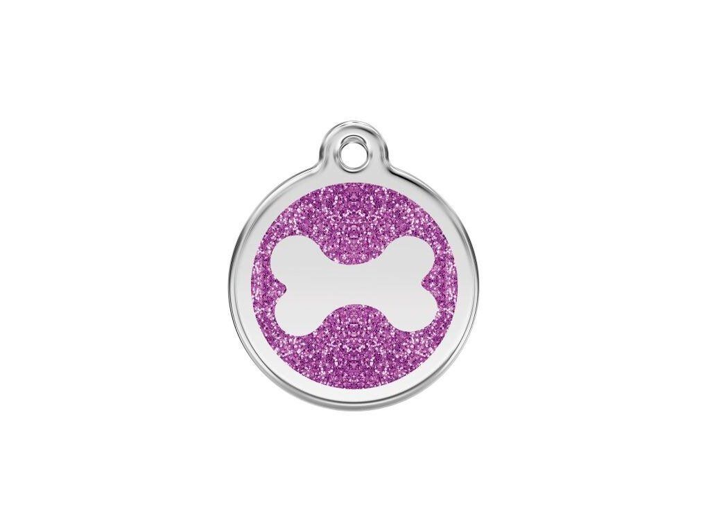 Red Dingo známka – Bone Glitter Purple – Kost fialová třpytivá velikost známky M - 30 mm