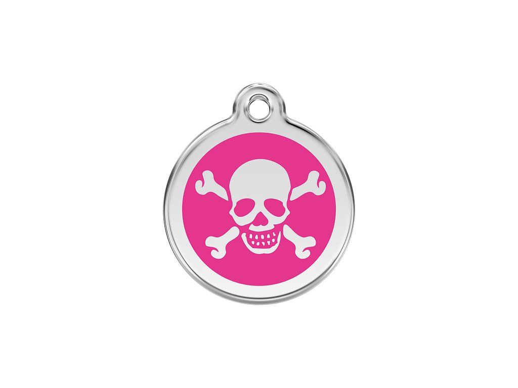 Red Dingo známka – Cross Bone Hot Pink – Lebka tmavě růžové velikost známky S - 20 mm
