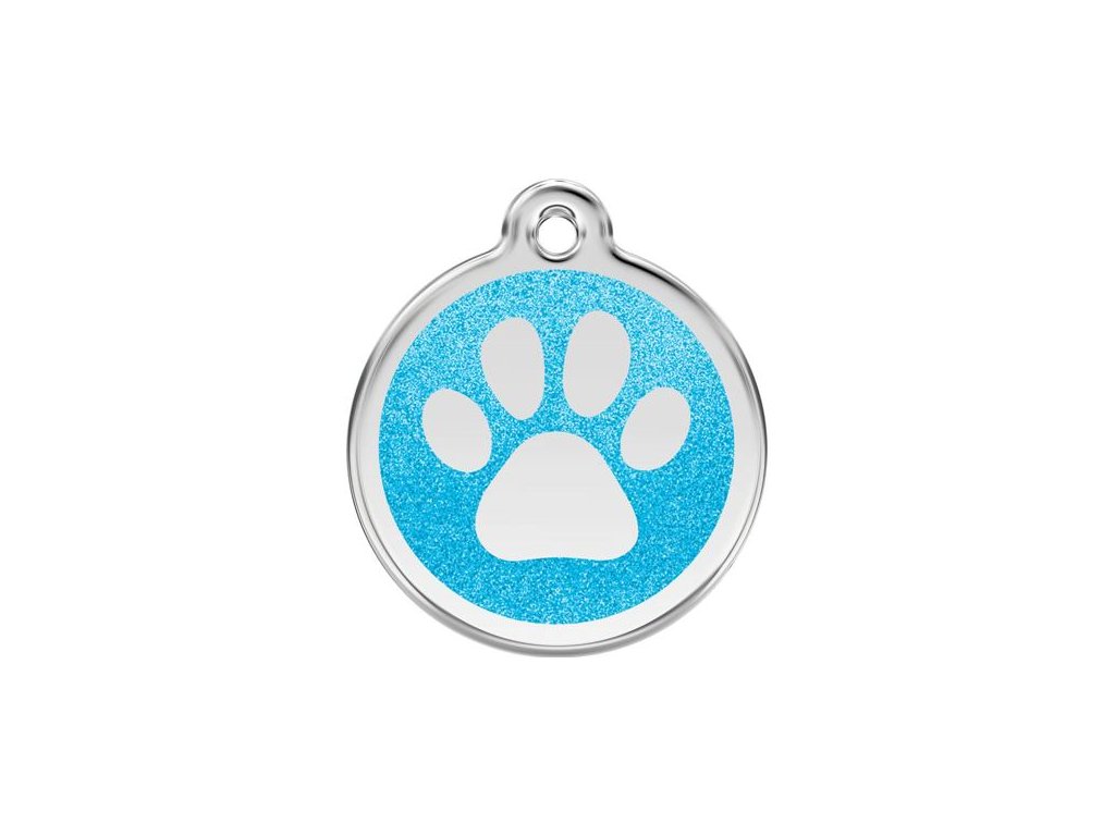 Red Dingo známka – Paw Print Glitter Aqua – Tlapka aqua třpytivá velikost známky S - 20 mm