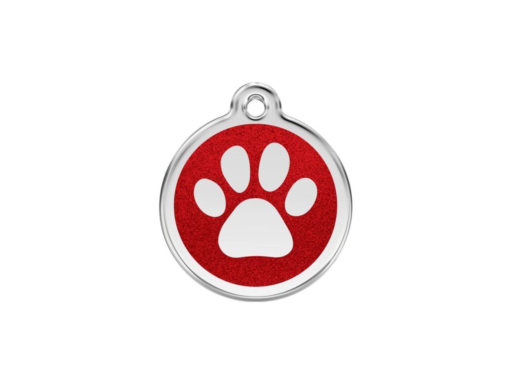 Red Dingo známka – Paw Print Glitter Red – Tlapka červená třpytivá velikost známky M - 30 mm