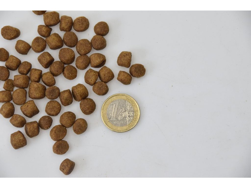 Hmotnost krmné dávky uvedená na obalu krmiva je orientační. Individuálně závisí na plemeni, věku, aktivitě, temperamentu, zátěži, genetických faktorech. Nepřekrmte svého psa v důsledku toho, že se necháte ovlivnit jeho chutí k jídlu a dychtivostí po granulích. Překrmení je nejčastější příčinou obezity. Denní krmnou dávku rozdělte štěňatům podle věku na 5-3 porce, dospělým jedincům na porce dvě. Krmivo můžete zkrmovat suché nebo navlhčené, navlhčené nenechávejte v misce déle než půl hodiny. Pes musí mít dostatek pitné vody. Na krmivo přecházejte postupně. Přechodu na nové krmivo věnujte několik dní, kdy budete míchat nové se stávajícím. Skladujte v suchu a chladu.