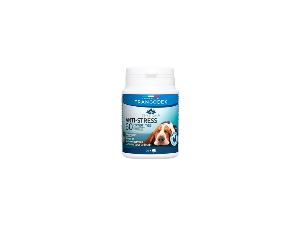 Tablety ANTISTRES FRANCODEX obsahují L-tryptofan. Tuto aminokyselinu tělo využívá k produkci serotoninu, neurotransmiteru, který pomáhá uklidnit hyperaktivní, nervózní nebo úzkostné psy bez jakýchkoli vedlejších účinků nebo závislosti. Dá se použít pro zvířata, která zůstávají přes den sama, na výletě nebo při velmi stresových situacích (stěhování, nový mazlíček v domácnosti...).
