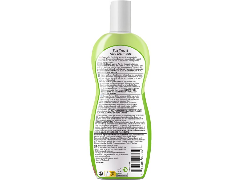 Účinný šampon s přírodní Aloe Vera a Tea Tree olejem je ideální volbou pro psy trpící podrážděnou, citlivou nebo svědivou pokožkou.