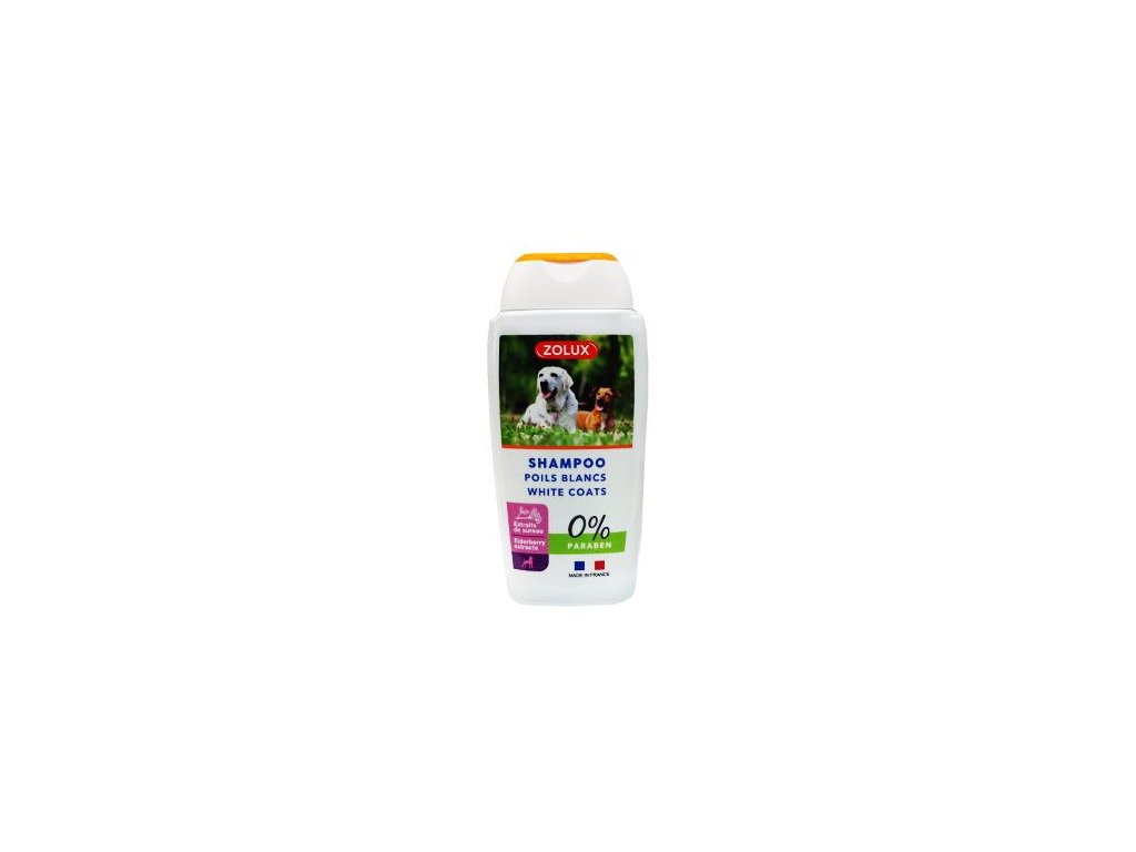 Šampon pro bílou srst, vhodný pro všechna plemena psů. Tento šampon s extraktem bezinek jemně čistí srst a oživuje její přirozenou barvu a omezuje žloutnutí. Bez parabenůNávod k použití: namokřete psa, aplikujte šampon a vytvořte bohatou pěnu. Důkladně opláchněte.