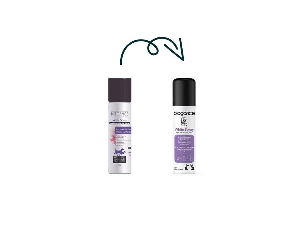 Biogance White Spray je speciální suchý šampon ve spreji pro psy i kočky se světlou a bílou srstí.