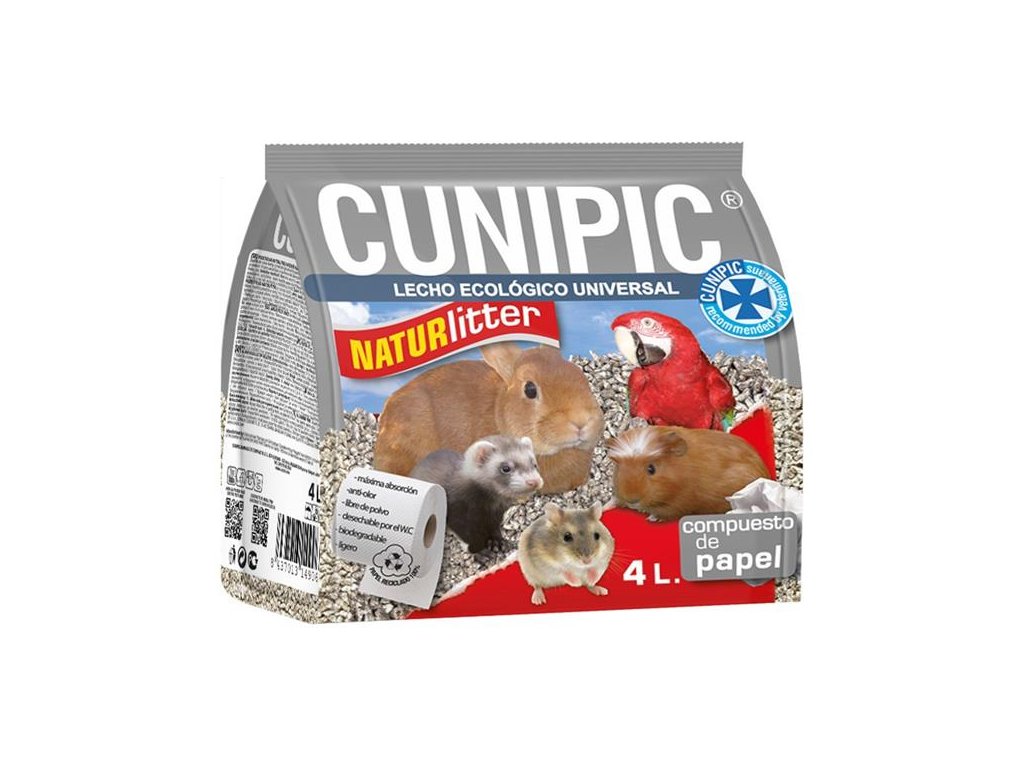 Podestýlka Cunipic Naturlitter je papírová podestýlka pro drobné savce a ptáky s vynikající savostí. Tvoří ji lisované pelety z bezprašného recyklovaného papíru.