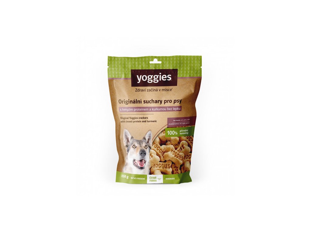 Suchary Yoggies jsou vyrobené bez obilí, sóji, chemie, dochucovadel i cukrů a vašeho pejska potěší jak svou vůní, tak i tvrdostí. A proto si užije i jejich chroupání.