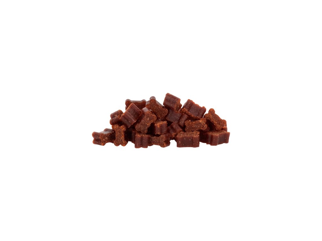 Poloměkké šťavnaté mini kostičky pro psy s vysokým podílem masa. Ideální při výcviku nebo jako chutná malá odměna. Vzhledem k velikosti jsou jsou vhodné i pro malá plemena psů. Tyto chutné pamlsky byly vyvinuty ve spolupráci se psími školami a cvičiteli. Kostičky jsou díky vysokému podílu masa velice dobře snášeny a psům velice chutnají. Velikost kostičky je cca 1 cm a hodí se tak ideálně při výcviku nebo jako malá odměna. Kostičky neobsahují cukr. Složení: maso a živočišné vedlejší produkty, obiloviny, ryby a rybí produkty (4% losos) Analýza: bílkoviny 32,0%, tuk 6,0%, vláknina 2,0%, popeloviny 4,0%, vlhkost 25,0% Doplňkové látky: konzervační látky, barviva Chewies jsou vyrobené v Německu. Podávejte jako odměnu. Zajistěte dostatek pitné vody. Určeno pro psy.Doplňkové parametry