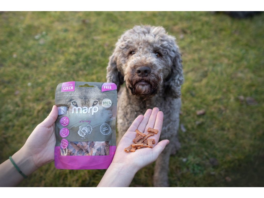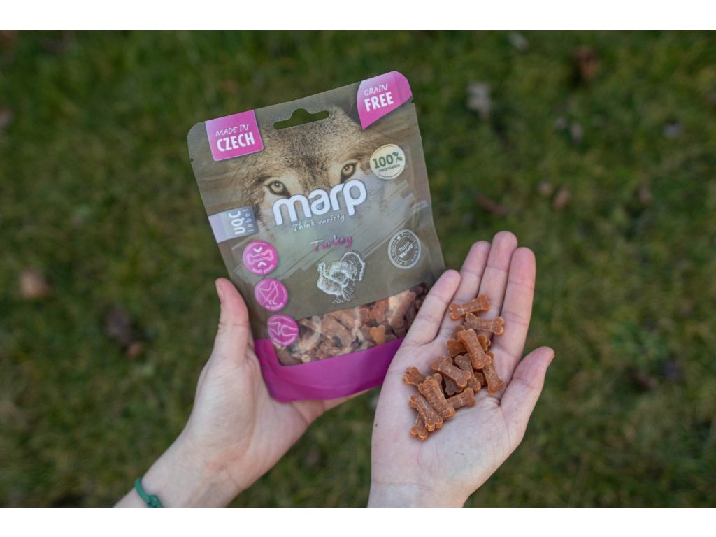 Vylepšená verze našich populárních tréninkových pamlsků nově v rámci řady Marp Variety. Přírodní suroviny a 50 % masa, to je přesně ten důvod, proč byste je měli zkusit. Malé kostičky se hodí především pro trénink, určitě je však můžete použít i jen tak, pro radost. Vyrábíme je v ČR, takže jsou pod přísným dohledem evropské legislativy. Můžete si být tedy jistí, že obsahují přesně to, co je na obalu. Jejich chutnost je skutečně vysoká, váš pes je bude milovat a vy díky tomu získáte silný nástroj pro jeho motivaci při tréninku.