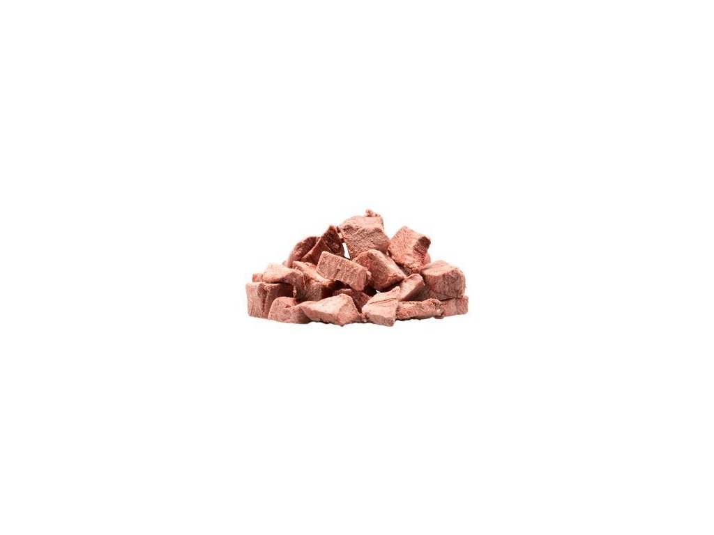 Na výrobu jednoho mrazem sušeného pamlsku je potřeba pětinásobné množství čerstvého masa.