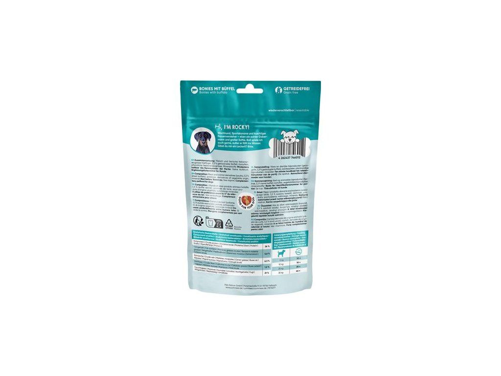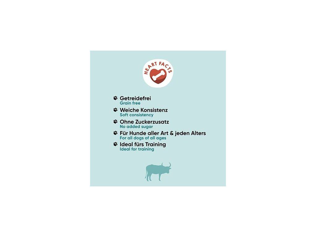 Měkké pamlsky ve tvaru drobných kostiček s netradiční chutí buvolího masa jsou skvělé nejen na trénink – snadno je rozdělíte v ruce, krásně voní a neobsahují obiloviny, umělé konzervanty, dochucovadla, ani přidaný cukr.Hodí se pro psy každého věku a velikosti a neobvyklá chuť buvola může zachutnat i mazlíčkům, kteří tradiční druhy masa odmítají.
