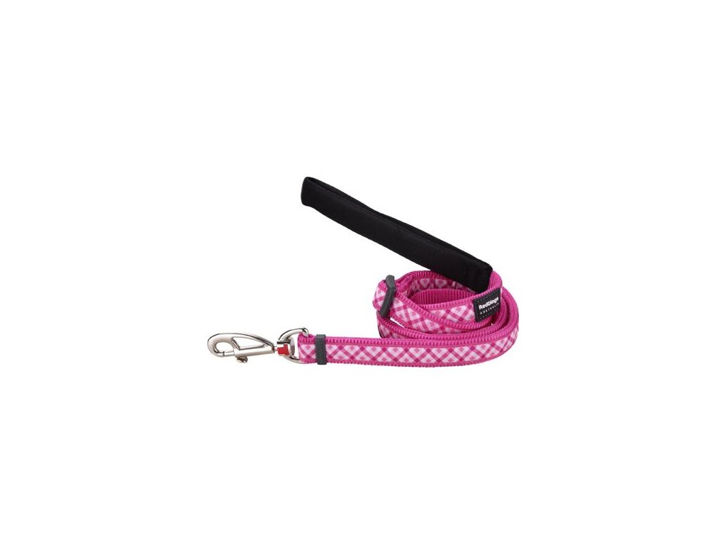 Red Dingo vodítko – Gingham Hot Pink – 15 mm x 1,8 m