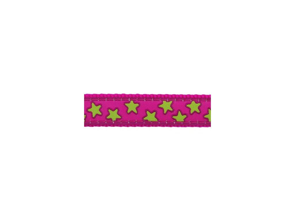 Red Dingo vodítko – Stars Lime on Hot Pink – 12 mm x 1,8 m