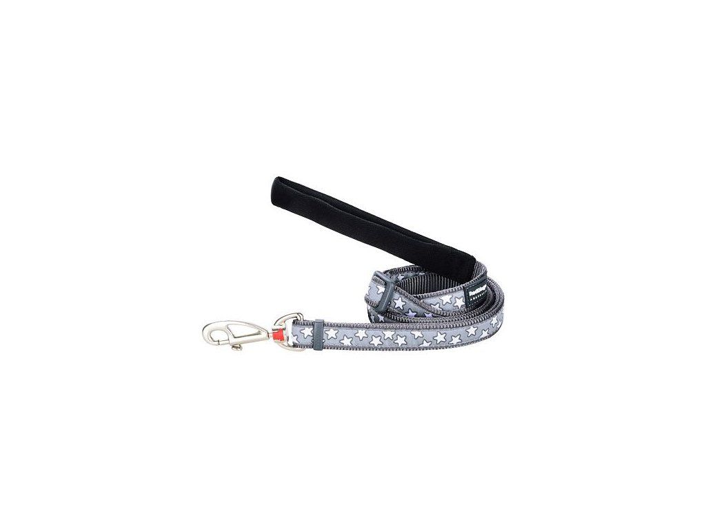 Red Dingo vodítko – Stars White on Grey – 25 mm x 1,8 m