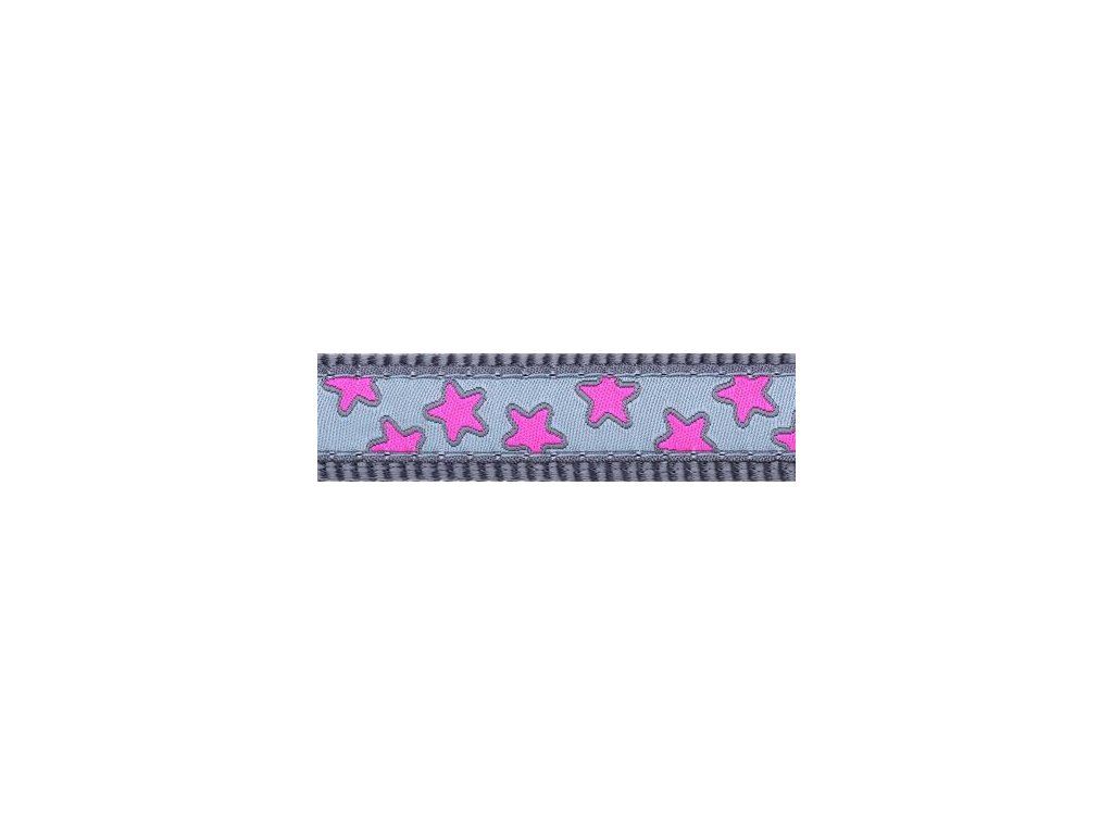 Red Dingo vodítko přepínací – Hot Pink Stars on Grey – 12 mm x 2 m